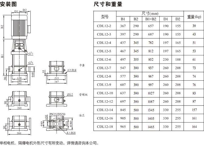 產(chǎn)品介紹 CDLF12-3FSWSC 不銹鋼工業(yè)增壓泵是一種多功能產(chǎn)品,可以輸送從自來水到工業(yè)液體的各種不同介質(zhì),適應(yīng)于不同溫度、流量和壓力范圍,CDL適用于無腐蝕性液體,CDLF適用于輕度腐蝕性液體。 水:水廠過濾與輸送、水廠分區(qū)送水、主管增壓、高層建筑增壓。 工業(yè)增壓:流程水系統(tǒng)、清洗系統(tǒng)、高壓沖洗系統(tǒng)、消防系統(tǒng)。 工業(yè)液體輸送:冷卻和空調(diào)系統(tǒng)、鍋爐給水和冷凝系統(tǒng)、機床配套、酸和堿。 水處理:超濾系統(tǒng)、反滲透系統(tǒng)、蒸餾系統(tǒng)、分離器、游泳池。 灌溉:農(nóng)田灌溉、噴灌、滴灌。 運行條件 稀薄、干凈、非易燃易爆并不含固體顆粒或纖維的液體。 液體溫度:常溫型 -15℃至+70℃ 熱水型 -15℃至+120℃ 環(huán)境溫度:最高+40℃ 海拔:最高1000m CDLF12-3FSWSC 不銹鋼工業(yè)增壓泵為安裝標(biāo)準(zhǔn)電機的非自吸式多級離心泵,電機軸通過泵頭用軸聯(lián)器直接與泵軸連接,拉桿螺栓將耐壓筒、過流部件固定在泵頭和進出水段之間,泵進出水口在泵底同一直線上;本泵可根據(jù)需要配置智能保護器,對泵干轉(zhuǎn)、缺相、過載等進行有效保護。 電機 電機為全封閉,風(fēng)冷式二極標(biāo)準(zhǔn)電機。 防護等級:IP55 絕緣等級:F 標(biāo)準(zhǔn)電壓, 50Hz ![]() ![]() ![]() ![]() 因產(chǎn)品生產(chǎn)批次、型號不同,產(chǎn)品圖片及安裝尺寸僅供參考,詳情可聯(lián)系我們的銷售人員了解更多CDLF12-3FSWSC 不銹鋼工業(yè)增壓泵相關(guān)信息!