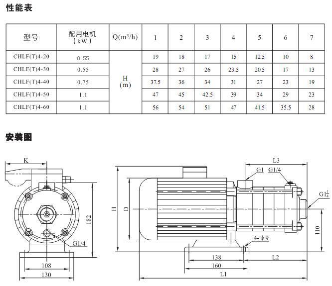 產(chǎn)品介紹 CHLF4-30LSWSC,不銹鋼清洗機(jī)專用離心泵非自吸離心泵是渤泉泵業(yè)制造有限公司制造的主導(dǎo)產(chǎn)品,配加長(zhǎng)軸電機(jī)采用了免修機(jī)械密封,緊湊式結(jié)構(gòu)使泵尺寸很小,軸向入口和徑向出口。輕型段式多級(jí)離心泵的過流部件均采用不銹鋼材料(304或316)制成,輕型不銹鋼多級(jí)離心泵具有低噪音,耐輕腐蝕,外形美觀、體積小、重量輕、使用壽命長(zhǎng)等特點(diǎn),不同材質(zhì)的硬質(zhì)合金密封,保證了不同介質(zhì)輸送均無泄漏;噪音低:兩個(gè)低噪音軸承下的水泵,運(yùn)轉(zhuǎn)平穩(wěn),除電機(jī)微弱聲響,基本無噪聲;故障率低:結(jié)構(gòu)簡(jiǎn)單合理,整機(jī)無故障工作時(shí)間大大提高。采用國內(nèi)優(yōu)秀水力模型優(yōu)化設(shè)計(jì)而成,是理想的新一代高效節(jié)能輕型臥式多級(jí)離心泵。采用了免修機(jī)械密封。輕型段式多級(jí)離心泵的過流部件均采用不銹鋼材料(304或316)制成,具有低噪音,耐輕腐蝕,外形美觀、體積小、重量輕、使用壽命長(zhǎng)等特點(diǎn)。 二、應(yīng)用范圍: CHLF4-30LSWSC,不銹鋼清洗機(jī)專用離心泵主要用于家庭型中央空調(diào)循環(huán)及工業(yè)上液體的傳輸。如脫礦物質(zhì)水、軟水、凈化系統(tǒng)、輕油等的循環(huán)和增壓。 1)小型中央空調(diào)循環(huán) 2)冷卻系統(tǒng) 3)工業(yè)清洗 4)水處理(水的凈化) 5)水產(chǎn)養(yǎng)殖 6)施肥/計(jì)量系統(tǒng) 7)環(huán)境應(yīng)用 三、工作條件: 稀薄、干凈、不凝、不爆炸、不含固體顆粒或纖維的液體。 液體溫度: 常溫型-15℃至+70℃ 熱水型+70℃至+110℃ 最大環(huán)境溫度:+40℃ 最大運(yùn)作壓力:10巴 最大進(jìn)口壓力受最大運(yùn)作壓力限制 介質(zhì)酸堿性:PH4~9 四、輸送液體: 1、稀薄、清潔、不含固體顆粒或纖維的非易燃易爆液體。 2、泵可以輸送諸如礦泉水、軟化水、純水、清油和其它輕化工介質(zhì)。 3、當(dāng)輸送液體的密度或粘度大于水,如需要,必須配用大功率電機(jī)。 4、泵是否適用于某一特定液體由多種因素決定,其中最重要的是氯含量、PH值、溫度和溶濟(jì)、油的含量等。 五、曲線條件: 下述條件適用于后面所示性能曲線。 1、所有曲線都基于電機(jī)在恒速2900rpm的測(cè)量值。 2、曲線容差符合ISO9906,附錄A。 3、測(cè)試采用20℃不含空氣的水,運(yùn)動(dòng)粘度為1mm2/s。 4、泵的使用參照加粗曲線的性能范圍,以防流量過小產(chǎn)生過熱和流量過大使電機(jī)過載等。 六、電機(jī): 輕型段式多級(jí)離心泵電機(jī)為全封閉,風(fēng)冷式二極電機(jī) 防護(hù)等級(jí):IP55 絕緣等級(jí):F 標(biāo)準(zhǔn)電壓, 50Hz: 1×220-240V 3×220-240V 380-415V ![]() ![]() 因產(chǎn)品生產(chǎn)批次、型號(hào)不同,產(chǎn)品圖片及安裝尺寸僅供參考,詳情可聯(lián)系我們的銷售人員了解更多CHLF4-30LSWSC清洗機(jī)專用離心泵相關(guān)信息!