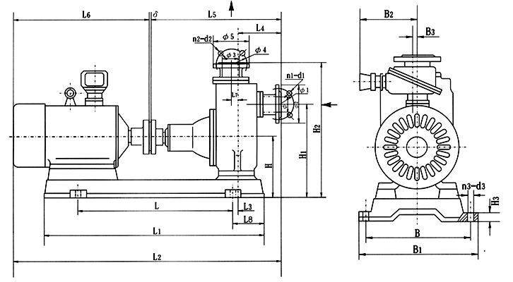 泵型號 型號 功率KW L L1 L2 L3 L4 L5 L6 L7 L8 δ H H1 H2 H3 B B1 B2 B3 Φ Φ1 Φ2 Φ3 Φ4 Φ5 n1-d1 n2-d2 n3-d3