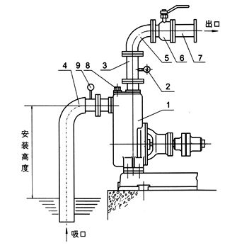 1、泵吸入口的安裝高度盡量不要超過5米,應特別注意吸入管路的密封性,以免漏氣而影響泵的自吸能力和正常運行。