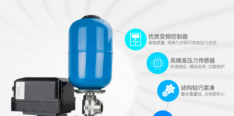 產品介紹 家用恒壓增壓泵 別墅公寓穩壓增壓泵是由水泵,電機,壓力傳感器,微電腦,變頻器組合而成。由壓力傳感器采集管網壓力傳輸至微電腦后再通過變頻器控制水泵電機按設定的壓力運行。變頻泵可以根據用戶用水量的變化自動調節水泵電機轉速(耗電量),使水泵出口壓力保持恒定。當用戶用水量小于水泵出水量時,控制系統根據用水量的變化對水泵進行調整運行,當用水量增加時管道系統內壓力下降,這時壓力傳感器把檢測到的信號傳送給微電腦控制單元,通過微電腦運行判斷,發出指令到變頻器,控制水泵電機,使轉速加快以保證系統壓力恒定,反之當用水量減少時,使水泵轉速減慢,以保持恒壓。在整個運行過程中,始終保持系統恒壓不變,使水泵始終工作在高效區,既保證用戶恒壓供水,又節省電能。 家用恒壓增壓泵 別墅公寓穩壓增壓泵可以在水泵壓力范圍內根據用水需求自由調節壓力,用電量比傳統水泵少10%~50%。 選擇變頻泵的時候揚程選大不選小,揚程選擇要比實際所需揚程大5~10米以便預留更多的壓力空間。 變頻恒壓:始終保持用水終端壓力恒定,徹底改善熱水怱冷怱熱,水壓怱大怱小,供水系統壓力穩定,無水錘現象. 節能環保: 變頻控制器采用平穩起動,停止的方式,無段智能變速運行,從而降低水泵噪音,減少水泵磨損延長泵組使用壽命,變頻泵根據用水端的壓力變化自動調整運行速度,做到用多少水,耗多少電,相比傳統增壓泵節能效果明顯. 保護功能:水泵變頻控制器具有多項電機保護功能,能有效減少水泵因缺相,過電流,缺水,高壓,等故障引起的損壞,并具有故障記錄功能,方便用戶維護和檢修. 安裝簡單:專用型水泵變頻控制系統,省去了通用變頻器各項參數繁瑣的設置,無須專業人員安裝調試,用戶如果無特殊要求,只需連接好管路,通上電源即可實現恒壓供水. 用途: 適用于家庭、別墅、公寓、賓館、寫字樓、醫院、學校等需要恒壓全自動化供水,也可用于工業用水、冷卻塔供水、大型機床等。 ![]() ![]() ![]()