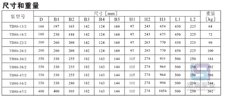 TD80-47/2 立式循環增壓泵采用電機與泵可分離式結構,泵部分設計為可拉出形式。所有的該類產品都配有標準電機和機械密封。電機為全封閉、風冷式標準電機。其主要尺寸符合JB/T8680標準。