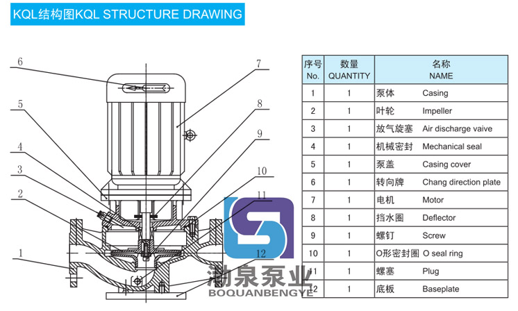 產品介紹 KQL20/110-0.37/2 立式管道離心泵供輸送不含固體顆粒的清水及物理化學性質類似于水的液體之用。同時根據(jù)使用溫度、介質等不同在ISG型管道離心泵基礎上派出適用熱水、高溫、腐蝕性化工泵、油泵。該產品具有同效節(jié)能、噪音低、性能穩(wěn)定等特點。 用途: KQL20/110-0.37/2 立式管道離心泵用于空調、采暖、衛(wèi)生用水、水處理冷卻冷凍系統(tǒng)、液體循環(huán)和供水、增壓及灌溉等領域中無腐蝕的冷水和熱水輸送。 工作條件: 轉速:2960r/min,1480r/min或980r/min 流量范圍:1.8~2000m3/h 揚程:≤127m 介質溫度:-10℃~120℃ 環(huán)境溫度:最大+40℃;海拔高度小于1000m;相對濕度不超過95% 材質: 泵殼、泵蓋、葉輪:鑄鐵 泵軸:45#鋼鍍鉻或不銹鋼(2Cr13) 機械密封動、靜環(huán):浸銻石墨、碳化硅 結構:結構緊湊的單級泵,適用于現(xiàn)代建筑物。 產品特點: KQL20/110-0.37/2 立式管道離心泵結構緊湊、合理,泵與電機直接連接,外形美觀,占地面積小效率高,閉式鑄鐵葉輪,軸承配置合理,葉輪懸臂短,機泵軸完全同心,泵運行平穩(wěn)、可靠,噪音低壽命長,強制環(huán)流沖洗機械密封,免保養(yǎng)、無滲漏。 選型指南: 例如:KQL80/160-7.5/2 或KQW80/160-7.5 KQL標準立式單級離心泵,KQW標準臥式單級離心泵 80進出口直徑 160葉輪名義直徑 7.5/2電機功率/電機極數(shù) ![]() ![]() 因產品生產批次、型號不同,產品圖片及安裝尺寸僅供參考,詳情可聯(lián)系我們的銷售人員了解更多KQL20/110-0.37/2 立式管道離心泵相關信息!
