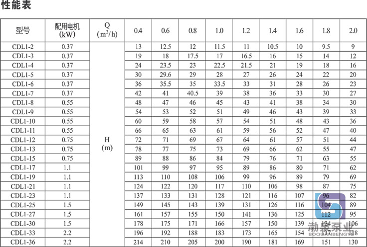 產品介紹 CDLF1-2FSWSC 輕型立式多級離心泵是一種多功能產品,可以輸送從自來水到工業液體的各種不同介質,適應于不同溫度、流量和壓力范圍,CDL不銹鋼多級泵適用于無腐蝕性液體,CDLF適用于輕度腐蝕性液體。 水:水廠過濾與輸送、水廠分區送水、主管增壓、高層建筑增壓。 工業增壓:流程水系統、清洗系統、高壓沖洗系統、消防系統。 工業液體輸送:冷卻和空調系統、鍋爐給水和冷凝系統、機床配套、酸和堿。 水處理:超濾系統、反滲透系統、蒸餾系統、分離器、游泳池。 灌溉:農田灌溉、噴灌、滴灌。 運行條件 稀薄、干凈、非易燃易爆并不含固體顆粒或纖維的液體。 液體溫度:常溫型 -15℃至+70℃ 熱水型 -15℃至+120℃ 環境溫度:最高+40℃ 海拔:最高1000m CDLF1-2FSWSC 輕型立式多級離心泵為安裝標準電機的非自吸式多級離心泵,電機軸通過泵頭用軸聯器直接與泵軸連接,拉桿螺栓將耐壓筒、過流部件固定在泵頭和進出水段之間,泵進出水口在泵底同一直線上;本泵可根據需要配置智能保護器,對泵干轉、缺相、過載等進行有效保護。 電機 電機為全封閉,風冷式二極標準電機。 防護等級:IP55 絕緣等級:F 標準電壓, 50Hz ![]() 因產品生產批次、型號不同,產品圖片及安裝尺寸僅供參考,詳情可聯系我們的銷售人員了解更多CDLF1-2FSWSC 輕型立式多級離心泵相關信息!