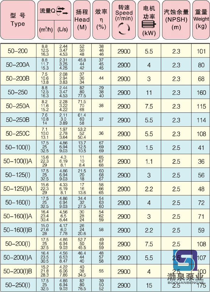 產品介紹 ISW50-250A 臥式熱水循環泵是采用IS型離心泵之性能參數,在一般臥式泵的基礎上進行巧妙組合設計而成,同時根據使用溫度、介質等不同在ISW型管道泵基礎上派生出適用熱水泵、高溫、耐腐蝕化工泵、油泵。該系列產品具有高效節能、噪音低、性能可靠等優點,符合JB/T53058-93的標準要求,產品按ISO2858標準設計制造。具有效率高、流量及揚程范圍大、結構合理、成本低、壽命長、占地面積小、安裝維修方便等特點。是替代IS、DL等常規產品的新離心泵,特別適用于高層建筑的給排水、噴灌、冶金、市政、礦山水處理排污,食品、化工、空調及其他行業輸送水、化學介質及其他液體。 ISW50-250A 臥式熱水循環泵流量范圍15~1200m3 /h,分基本型、擴流型、A、B、C切割型等250多種規格,并根據流體介質和溫度不同又派生出清水泵、熱水泵、化工泵、防爆油泵、防爆化工泵等系列產品。 ISW50-250A 臥式熱水循環泵主要用途 1、ISW臥式清水泵供輸送清水及物理化學性質類似于清水的其它液體之用,適用于工業和城市給排水、高層建筑增壓送水、園林噴灌、消防增壓、遠距離輸送、暖通制冷循環、浴室等冷暖水循環增壓及設備配套,使用溫度T≤80℃。 2、ISWR臥式熱水泵,廣泛適用于:冶金、化工、紡織、造紙以及賓館飯店等鍋爐熱水增壓循環輸送及城市采暖系統,ISWR型使用溫度T≤120℃。 3、ISWH臥式化工泵,供輸送不含固體顆粒,具有腐蝕性。粘度類似于水的液體,適用于石油、化工、冶金、電力、造紙、食品、制藥和合成纖維等部門,使用溫度為-20℃~+120℃。 4、ISWY臥式管道油泵,供輸送汽油、煤油、柴油等油類產品或易燃、易爆液體,被輸送介質溫度為-20℃~120℃。 5、ISWHY型臥式不銹鋼防爆化工離心泵,適用于輸送易燃性化工液體。 6、ISWD臥式低轉速泵,適應要求環境噪聲很低的場合,使用溫度T≤120℃。 ISW50-250A 臥式熱水循環泵工作條件 1.吸入壓力≤1.0MPa,或泵系統最高工作壓力≤1.6MPa,即吸入口壓力+泵揚程≤1.6MPa、泵靜壓試驗壓力為≤2.5MPa,訂貨時請注明系統工作壓力。泵系統工作壓力大于1.6MPa時應在訂貨時另行提出,以便在制造時泵的過流部分和聯接部分采用鑄鋼材料。 2.環境溫度<40℃,相對濕度<40%。 3.所輸送介質中固體顆粒體積含量不超過單位體積的0.1,粒度<0.2mm。 注:如果用介質為帶有細小顆粒,請在訂貨時說明,以便廠家采用耐磨式機械密封。 ISW50-250A 臥式熱水循環泵產品特點 運行平穩:泵軸的絕對同心度及葉輪優異的動靜平衡,保證平穩運行,絕無振動。 滴水不漏:不同材質的硬質合金密封,保證了不同介質輸送均無泄漏。 噪音低:兩個低噪音軸承支撐下的水泵,運轉平穩,除電機微弱聲響,基本無噪音。 故障率低:結構簡單合理,關鍵部分采用品質配套,整機無故障工作時間大大提高。 維修方便:更換密封、軸承,簡易方便。 占地更省:出口可向左、向右、向上三個方向,便于管道布置安裝,節省空間。 ![]() ![]() ![]() 因產品生產批次、型號不同,產品圖片及安裝尺寸僅供參考,詳情可聯系我們的銷售人員了解更多ISW50-250A 臥式熱水循環泵相關信息!