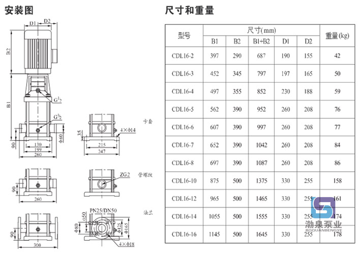 產(chǎn)品介紹 CDLF16-2FSWSC 不銹鋼立式增壓泵是一種多功能產(chǎn)品,可以輸送從自來水到工業(yè)液體的各種不同介質(zhì),CDLF16-2FSWSC 不銹鋼立式增壓泵適應(yīng)于不同溫度、流量和壓力范圍,CDL不銹鋼多級泵適用于無腐蝕性液體,CDLF適用于輕度腐蝕性液體。 水:水廠過濾與輸送、水廠分區(qū)送水、主管增壓、高層建筑增壓。 工業(yè)增壓:流程水系統(tǒng)、清洗系統(tǒng)、高壓沖洗系統(tǒng)、消防系統(tǒng)。 工業(yè)液體輸送:冷卻和空調(diào)系統(tǒng)、鍋爐給水和冷凝系統(tǒng)、機床配套、酸和堿。 水處理:超濾系統(tǒng)、反滲透系統(tǒng)、蒸餾系統(tǒng)、分離器、游泳池。 灌溉:農(nóng)田灌溉、噴灌、滴灌。 運行條件 稀薄、干凈、非易燃易爆并不含固體顆粒或纖維的液體。 液體溫度:常溫型 -15℃至+70℃ 熱水型 -15℃至+120℃ 環(huán)境溫度:最高+40℃ 海拔:最高1000m CDLF16-2FSWSC 不銹鋼立式增壓泵為安裝標準電機的非自吸式多級離心泵,電機軸通過泵頭用軸聯(lián)器直接與泵軸連接,拉桿螺栓將耐壓筒、過流部件固定在泵頭和進出水段之間,泵進出水口在泵底同一直線上;本泵可根據(jù)需要配置智能保護器,對泵干轉(zhuǎn)、缺相、過載等進行有效保護。 電機 電機為全封閉,風冷式二極標準電機。 防護等級:IP55 絕緣等級:F 標準電壓, 50Hz 因產(chǎn)品生產(chǎn)批次、型號不同,產(chǎn)品圖片及安裝尺寸僅供參考,詳情可聯(lián)系我們的銷售人員了解更多CDLF16-2FSWSC 不銹鋼立式增壓泵相關(guān)信息!