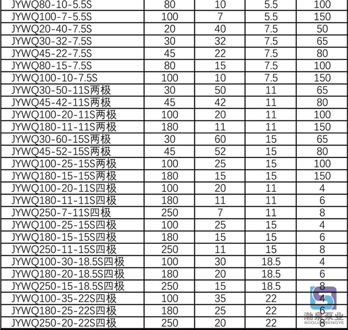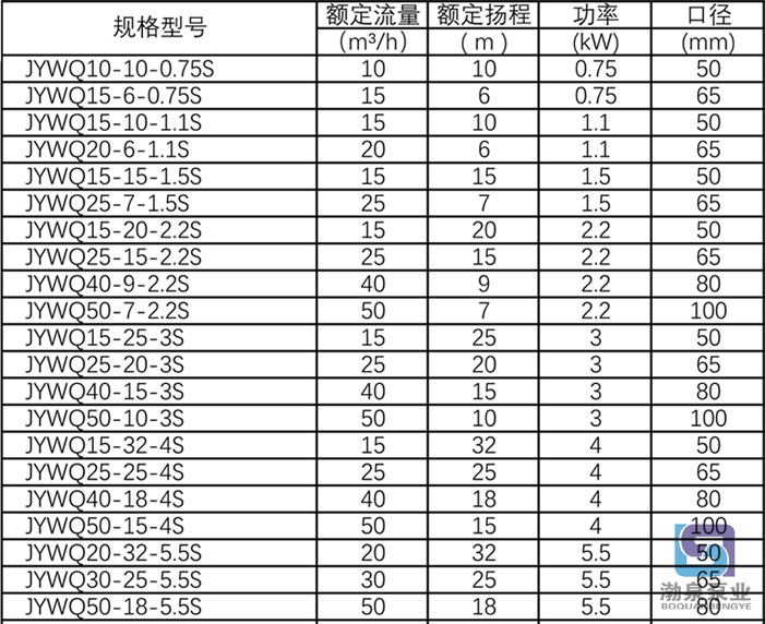 產(chǎn)品介紹 JYWQ80-15-7.5S 耐腐蝕攪勻潛水排污泵采用不銹鋼精密鑄造外殼,具有耐腐蝕、環(huán)保型、揚(yáng)程高、流量大等特點(diǎn)。 產(chǎn)品特點(diǎn) 1.JYWQ80-15-7.5S 耐腐蝕攪勻潛水排污泵采用獨(dú)特的單、雙流道式葉輪結(jié)構(gòu),提高了污物的通過能力,根據(jù)產(chǎn)品型號(hào)能通過泵口徑5倍的纖維,與直徑約為泵出口口徑50%的固體顆粒。 2.采用氟橡膠雙端面機(jī)封,氟橡膠徑向O型圈密封,有效對(duì)環(huán)境惡劣的液體進(jìn)行密封保護(hù)作用。 3.采用精密鑄造泵殼,重量輕、耐腐蝕、節(jié)能型、外形美觀、檢修方便、無需建泵房,潛入水中即可工作,減少工程價(jià)。 4.不銹鋼排污泵內(nèi)安裝過熱與電流保護(hù)器,防止電機(jī)過載發(fā)熱。特點(diǎn):利用泵自身出水壓力,攪勻污水池內(nèi)沉淀污泥,真正達(dá)到徹底排出污水池沉淀物的目的。 主要用途 JYWQ80-15-7.5S 耐腐蝕攪勻潛水排污泵適用于建筑樓宇、醫(yī)院、住宅小區(qū)、市政工程、道路交通及施工、工廠排污、養(yǎng)殖、藥業(yè)、飲料、海水鹽水、一般腐蝕性介質(zhì)中含有的固體顆粒、長纖維廢水、污水。 排污泵使用條件 1.以葉輪中心為準(zhǔn),潛入水下深度不得超過5m; 2.輸送介質(zhì)溫度不高于60C ; 3.輸送介質(zhì)的運(yùn)動(dòng)黏度為7x 10-~23x 10-m'/S ![]() ![]() ![]() 因產(chǎn)品生產(chǎn)批次、型號(hào)不同,產(chǎn)品圖片及安裝尺寸僅供參考,詳情可聯(lián)系我們的銷售人員了解更多JYWQ80-15-7.5S 耐腐蝕攪勻潛水排污泵相關(guān)信息!
