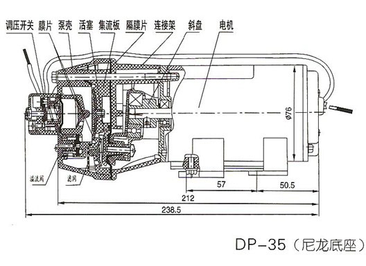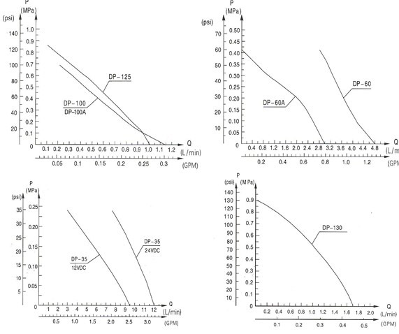 2.裝有隨泵附帶的進出口接頭,DP-130 DP-125 DP-100 DP-60型微型隔膜泵進出口采用ZG3/8″外牙G29/64″彎管接頭;DP-35微型隔膜泵進出口采用3/8″外牙軟管接頭.