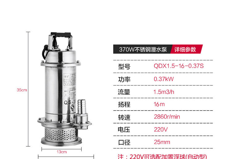 QDX1.5-16-0.37S防腐蝕耐酸堿化工泵是一款采用精密鑄造耐輸送高溫度介質(高溫型介質溫度可達120℃)、安裝移動方便、多種保護、可靠性高等特點的一款潛水電泵。是深受國內外廣大用戶歡迎的質量穩定使用壽命長的一款潛水泵。 產品概述: 1、QDX1.5-16-0.37S防腐蝕耐酸堿化工泵整體采用不銹鋼精密鑄造,耐腐蝕,環保型,外形美觀,體積小,經久耐用。 2、采用氟橡膠雙端面機封,氟橡膠徑向O型圈密封,有效地對環境惡劣的液體進行密封保護作用。 3、電機采用F級絕緣,裝有熱保護裝置,大大延長了泵的使用壽命。 4、可根據客戶特殊要求定制防腐蝕電纜線、四氟機封,及高溫液體的零件配置。 5、采用不銹鋼閉式沖壓焊接葉輪,大大提高了揚程。 使用條件: 1、電泵潛入水下深度不超過5m。 2、輸送介質溫度不超過60℃。 3、輸送介質的PH值304(4-10), 316(2-13)。 4、輸送介質中含固體顆粒直徑不大于0.2mm,體積不超過0.1%。 主要用途: 適用于工礦企業、食品行業、海水養殖、景觀工程、深井提水、農田灌溉等一般腐蝕性介質。 ![]() ![]() ![]() ![]() ![]()
